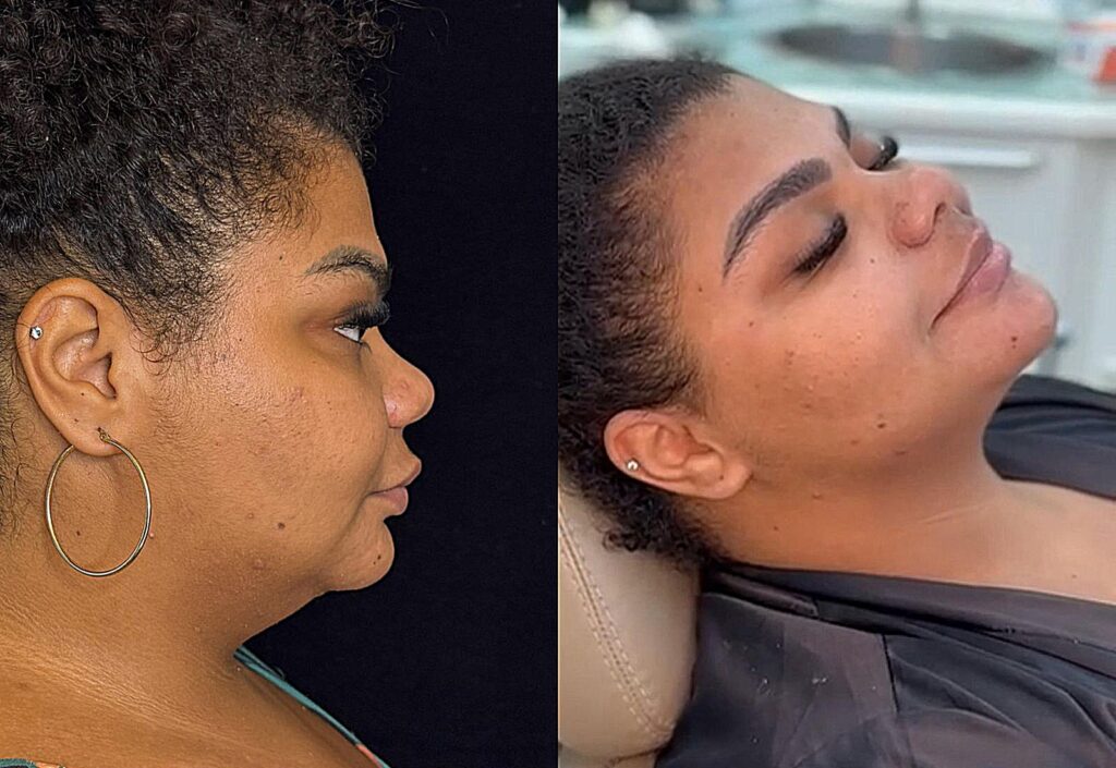 Babi passou por procedimentos semelhantes, com acréscimo de toxina botulínica no pescoço, para suavizar os colares de rugas e definir o contorno do rosto.