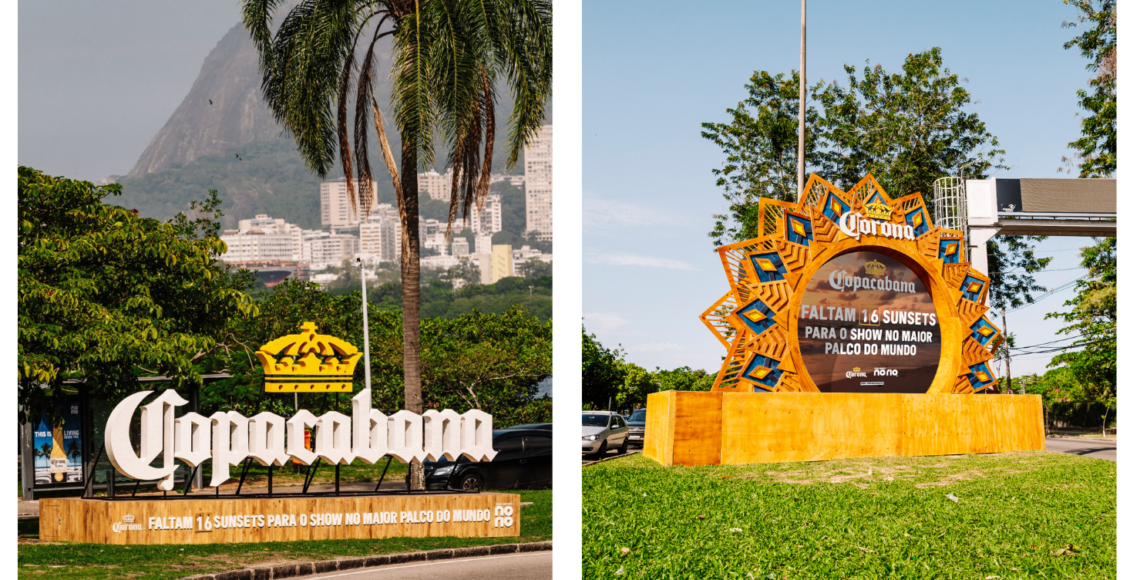 Já para celebrar a praia icônica que receberá esse grande espetáculo, Corona instalou dois letreiros em homenagem à Copacabana – o primeiro situado em um dos acessos ao bairro, no Corte do Cantagalo e o segundo na Avenida Borges de Medeiros, pouco depois da saída do Túnel Rebouças.
